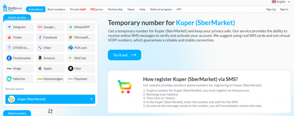 Registrazione su Kuper utilizzando un numero virtuale: passo dopo passo