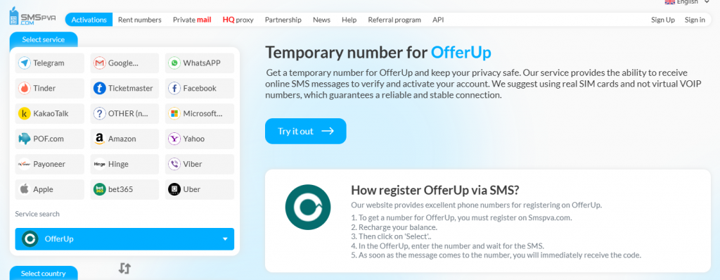 仮想番号を使って OfferUp に登録する