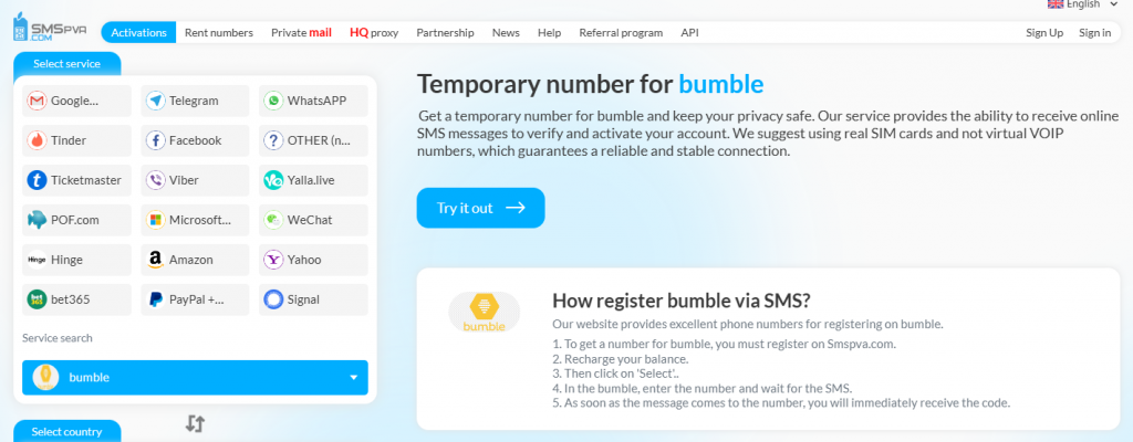 O registro de uma conta no Bumble, uma plataforma popular para paquera, namoro e amizades, geralmente requer confirmação via celular. No entanto, nem todos os usuários podem usar o seu número de telefone pessoal. Nesses casos, você pode usar serviços de aluguel de números. Neste artigo, vamos analisar detalhadamente o processo de registro de uma conta no Bumble usando um serviço de aluguel de números.