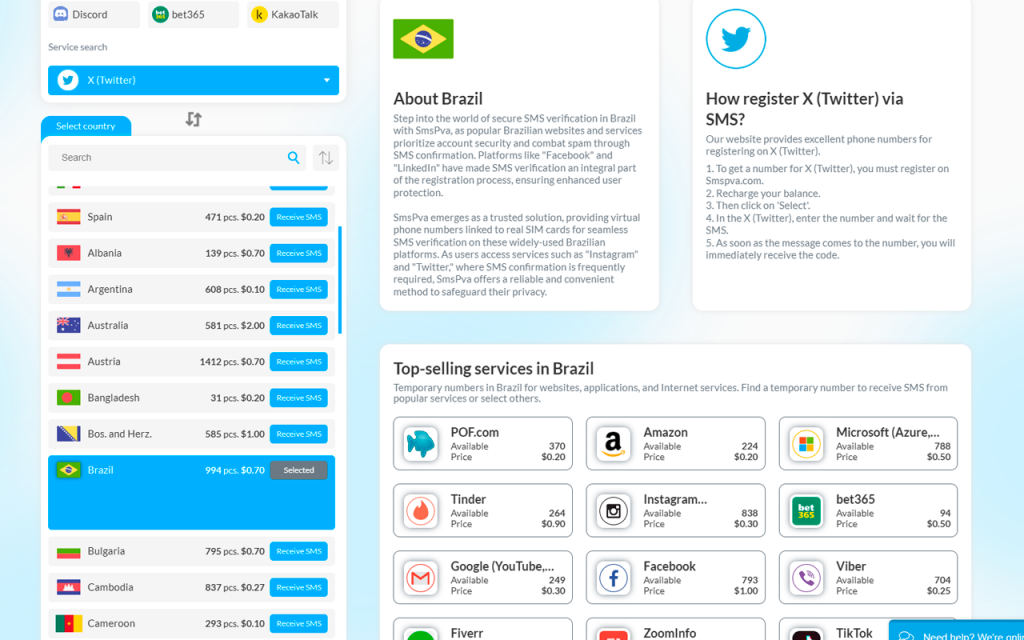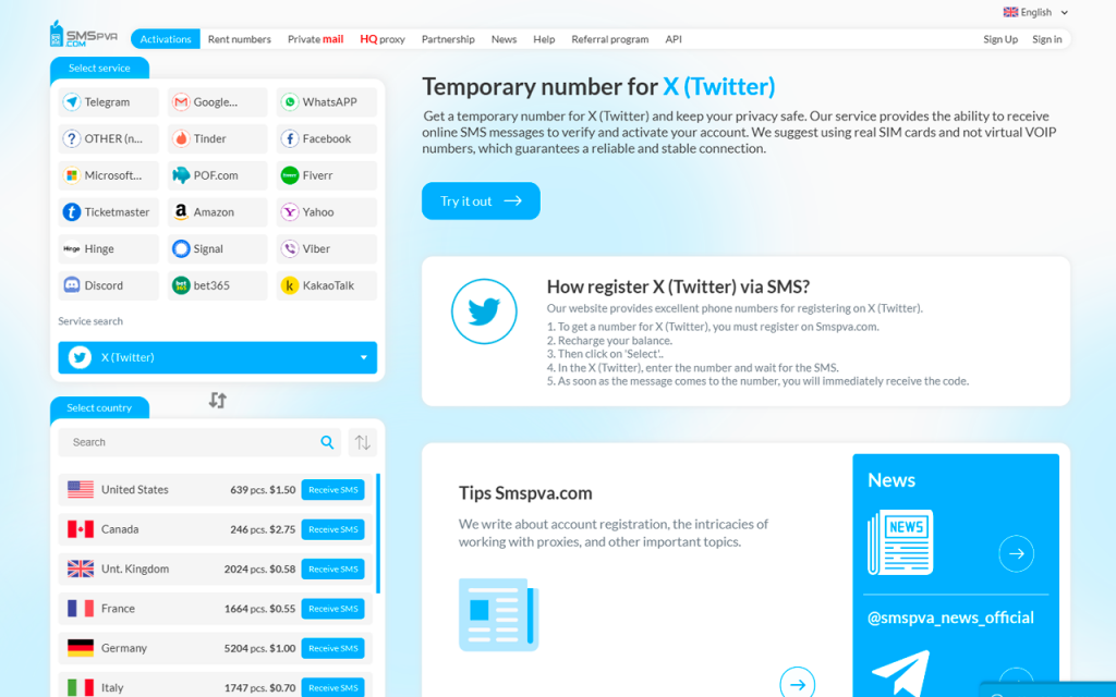 1. Escolha um serviço para obter um número virtual. Aceda ao site smspva.com ou a outro serviço similar que forneça números virtuais para registo em redes sociais.