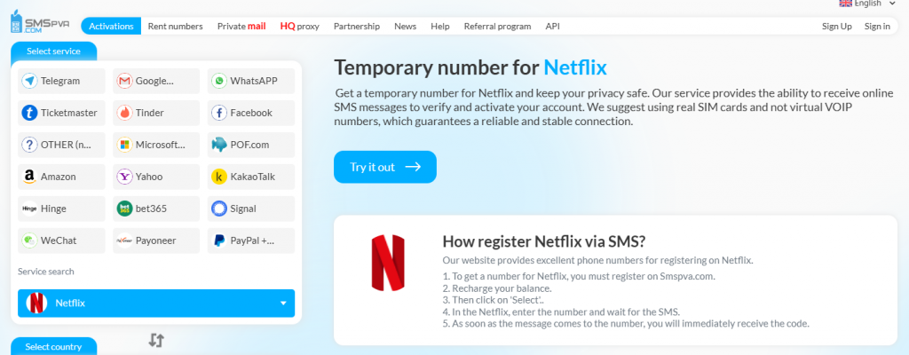 - Navegue pelo mundo do cinema online com SMS PVA: Netflix como exemplo