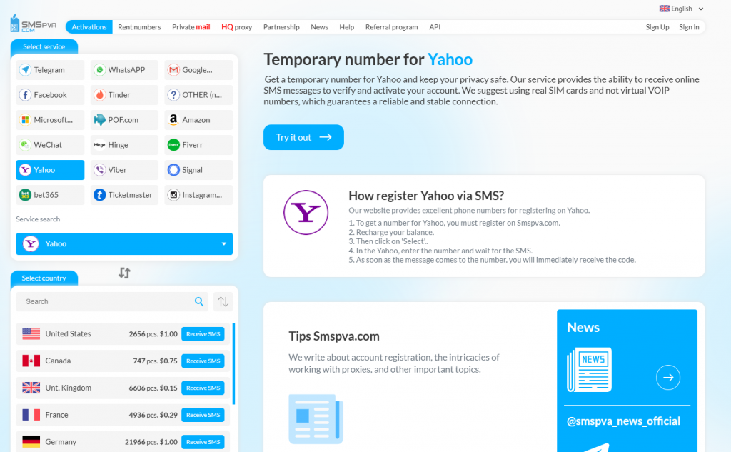 O popular site Yahoo oferece acesso a informações de todo o mundo e serviços de e-mail, mas é necessário realizar o cadastro primeiro. Embora números de telefone gratuitos possam ser encontrados na Internet, eles costumam ter restrições e riscos de segurança. Nesse contexto, os SMS PVA (números virtuais verificados) atuam como uma alternativa mais conveniente e segura para o registro.