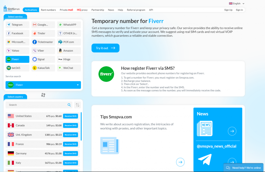 Números virtuais tornaram-se uma forma popular de contornar as restrições de números de telefone e manter o anonimato em plataformas sociais como o Fiverr. Um serviço que oferece números virtuais temporários para receber SMS é o smspva.