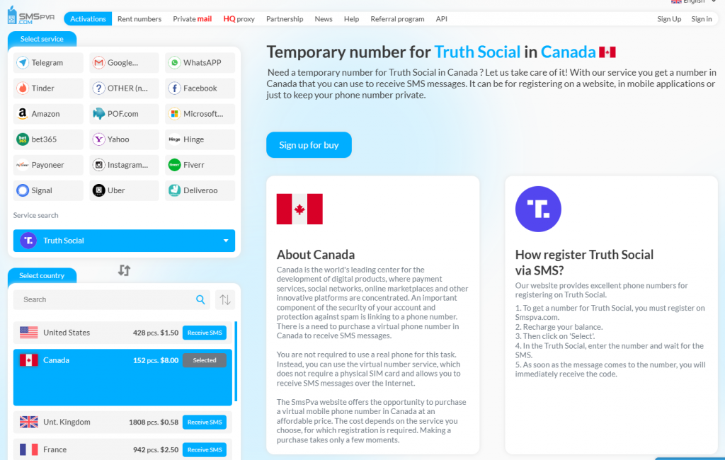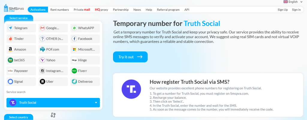- Truthsocial’a kayıt için kullanılacak geçici bir numara elde edin.
